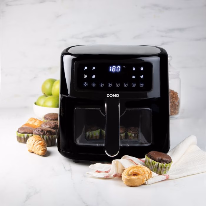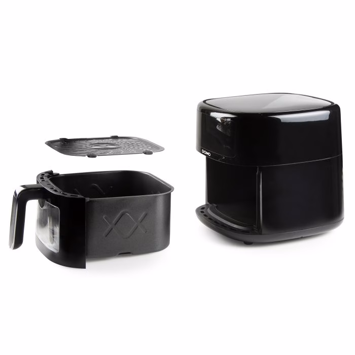 Tänu DOMO kuumaõhu fritüürile saate nautida “friteeritud” suupisteid ja krõpse tervislikul viisil. See kuumaõhu fritüür kasutab 80% vähem rasva kui traditsiooniline fritüür. Lisaks saate seda seadet kasutada lisaks krõpsudele, krokettidele või suupistetele ka liha, kala või isegi kookide valmistamiseks. Fritüür sobib ideaalselt ka köögiviljade röstimiseks või küpsetamiseks. Tänu vaateaknale ja sisevalgustusele saate kogu küpsetusprotsessil valvsalt jälgida. Selle rikkalik kuueliitrine mahutavus muudab selle õhkfritüüri piisavalt suureks, et toita kogu pere. Tänu käepidemele võimaldab see frittimiskorvi lihtsalt ja turvaliselt korralikult raputada – ja fritüür tuletab isegi meelde, millal on aeg seda teha!
