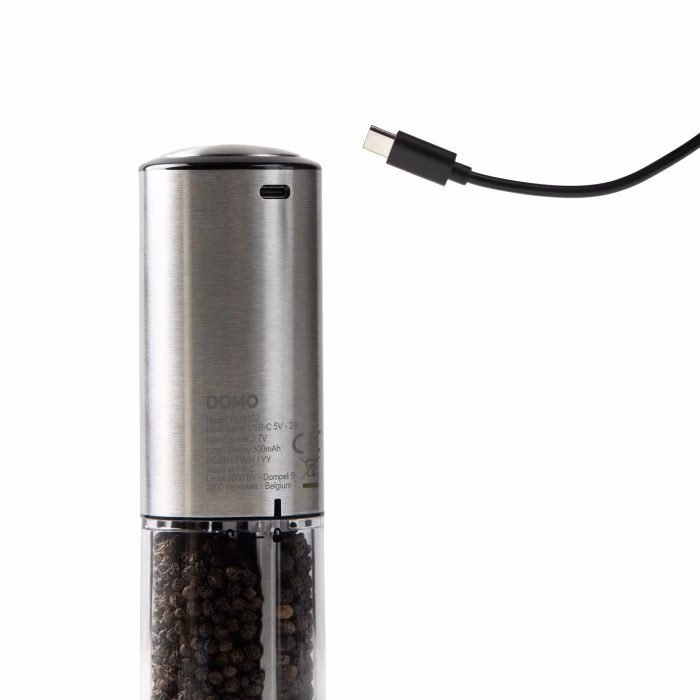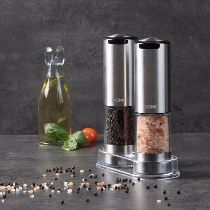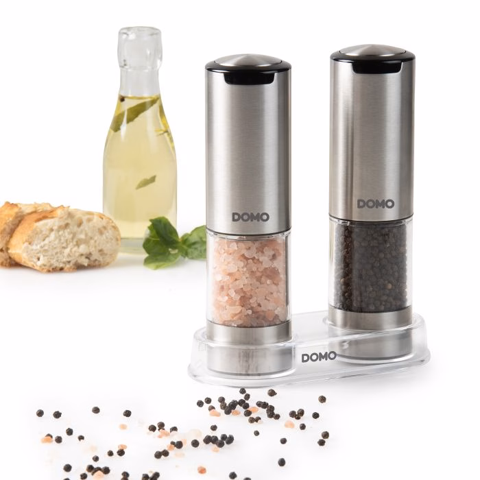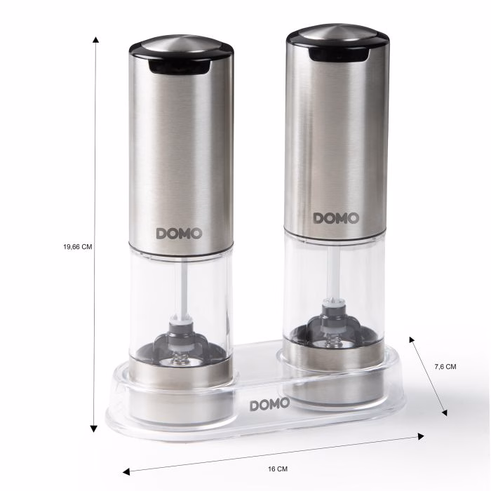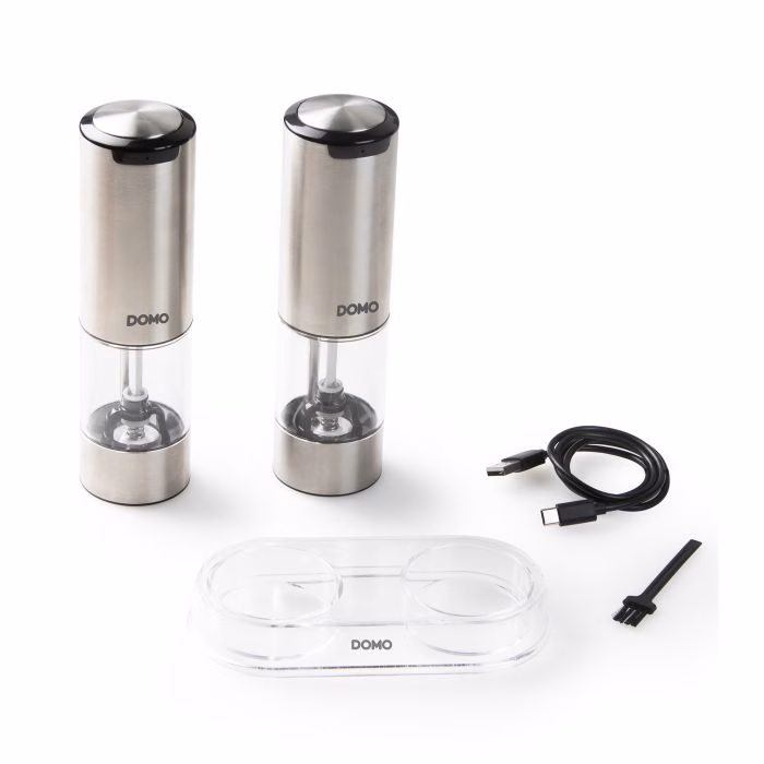 DOMO elektriline soola- ja pipraveski komplekt on ideaalne täiendus teie kööki. Maitsesta oma roogasid ühe nupuvajutusega. Tänu LED-tulele näete isegi pimedas keskkonnas täpselt, kui palju pipart või soola lisate. Kvaliteetne liitiumioonaku laeb hõlpsalt kaasasoleva USB-C-kaabli abil. Selle laetava soola- ja pipraveski keraamiline veski tagab suurepärase jahvatuskonsistentsi. Samuti saate jämedust vastavalt oma eelistustele reguleerida. Komplektis on pipraveski, soolaveski, USB-C laadimiskaabel ja läbipaistev akrüülist alus.
