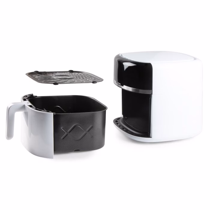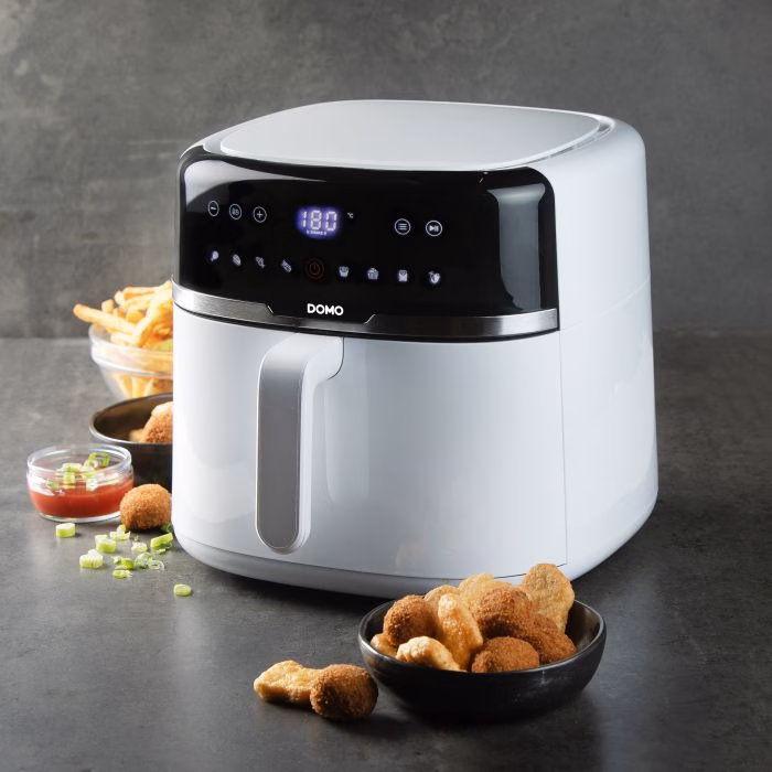 Tänu DOMO kuumaõhu fritüürile saate nautida “friteeritud” suupisteid ja krõpse tervislikul viisil. See kuumaõhu fritüür kasutab 80% vähem rasva kui traditsiooniline fritüür. Lisaks saate seda seadet kasutada lisaks krõpsudele, krokettidele või suupistetele ka liha, kala või isegi kookide valmistamiseks. Fritüür sobib ideaalselt ka köögiviljade röstimiseks või küpsetamiseks. Selle rikkalik kaheksaliitrine mahutavus muudab selle õhkfritüüri piisavalt suureks, et toita kogu pere. Tänu käepidemele võimaldab see frittimiskorvi lihtsalt ja turvaliselt korralikult raputada – ja fritüür tuletab isegi meelde, millal on aeg seda teha!